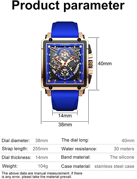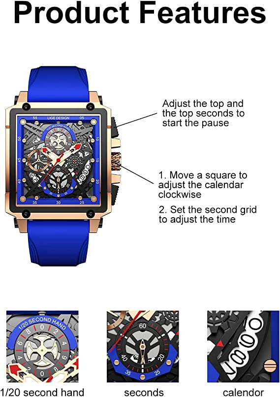 OVERFLY LIGE Mens Watch Analog Chronograph Square Dial wrist Watch for Men
