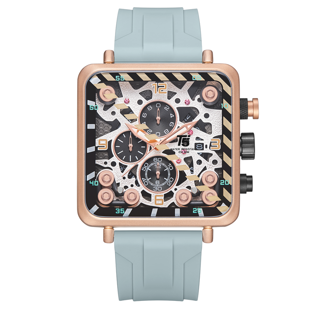 T5 Mens Watch Analog Chronograph Luxury with Grey Silicone Strap Wrist Watch For Men