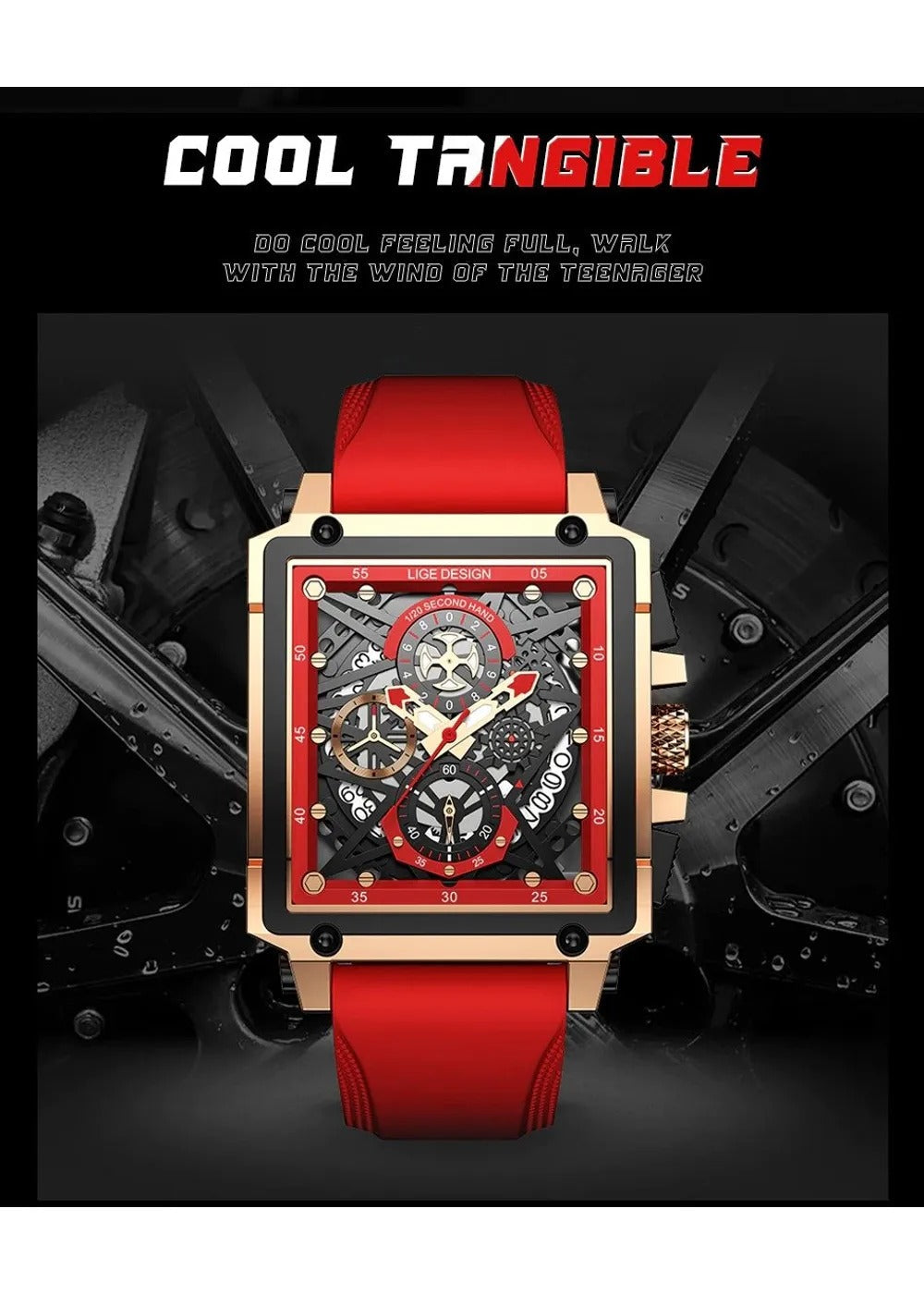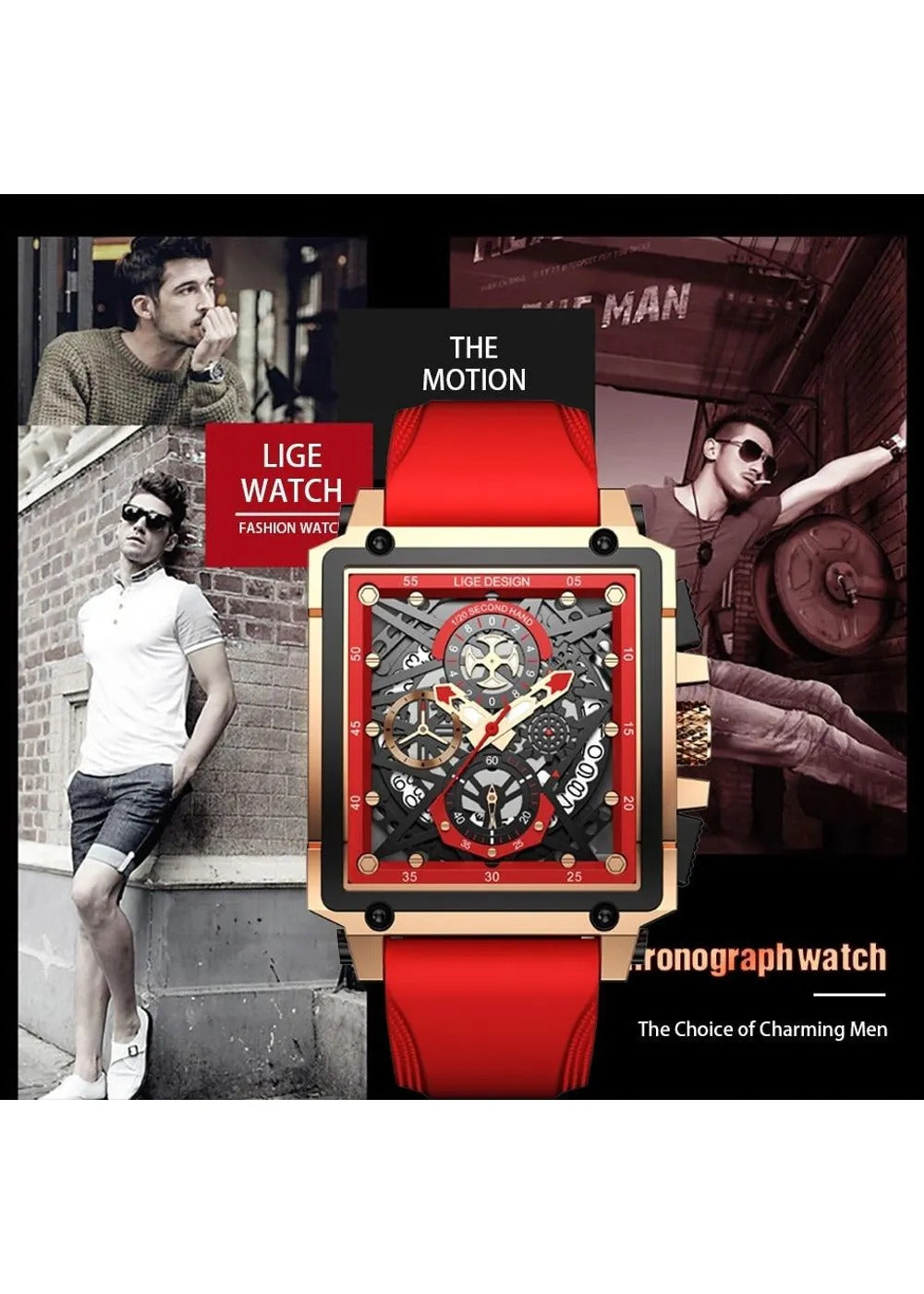OVERFLY LIGE NOW IN INDIA - Rectangle Dial Men's Analog Chronograph Watch (Red)