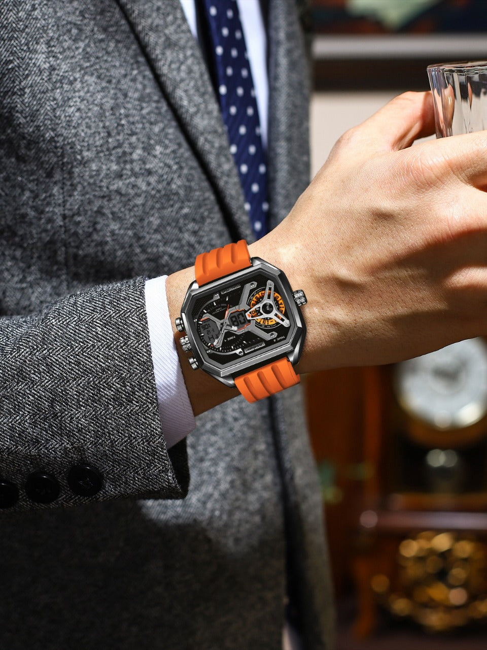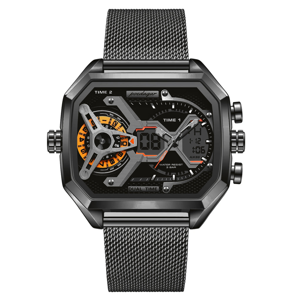 POEDAGAR Mens Dual Time Chronograph Luxury Watch Wrist Watch For Men Analog-Digital Watch